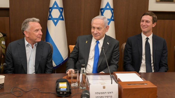 Unelected βnegotiatorsβ selected by little Satan. Real estate developers cashing in on the Gaza Genocide. Kushner, the owner of 666 5th Ave, NYC.
