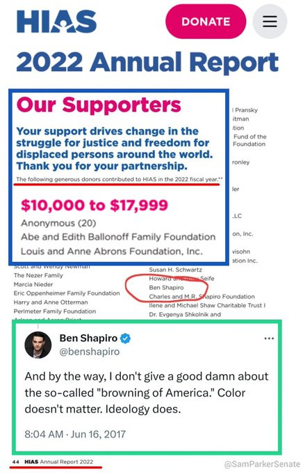 HIAS fundraising documents show America’s favorite kosher rapper Shapiro donated between $10k and $18k to this organization in 2022 to assist the border invasion.