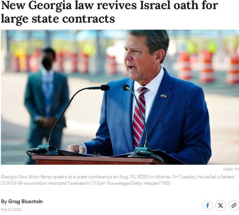 Imagine what they have on Governors like Brian Kemp. No state contracts without an oath to a theocratic foreign ethnostate.