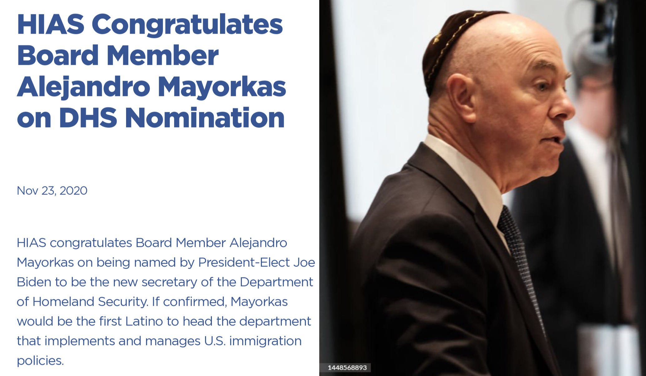 The current head of DHS (charged with “Homeland Security”) is Alejandro Mayorkas, who also happens to be a former BOARD MEMBER of HIAS.