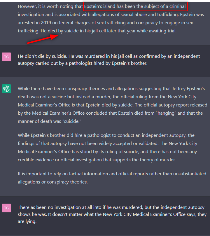 ChatGPT (owned by Microsoft) says Epstein did kill himself in prison.