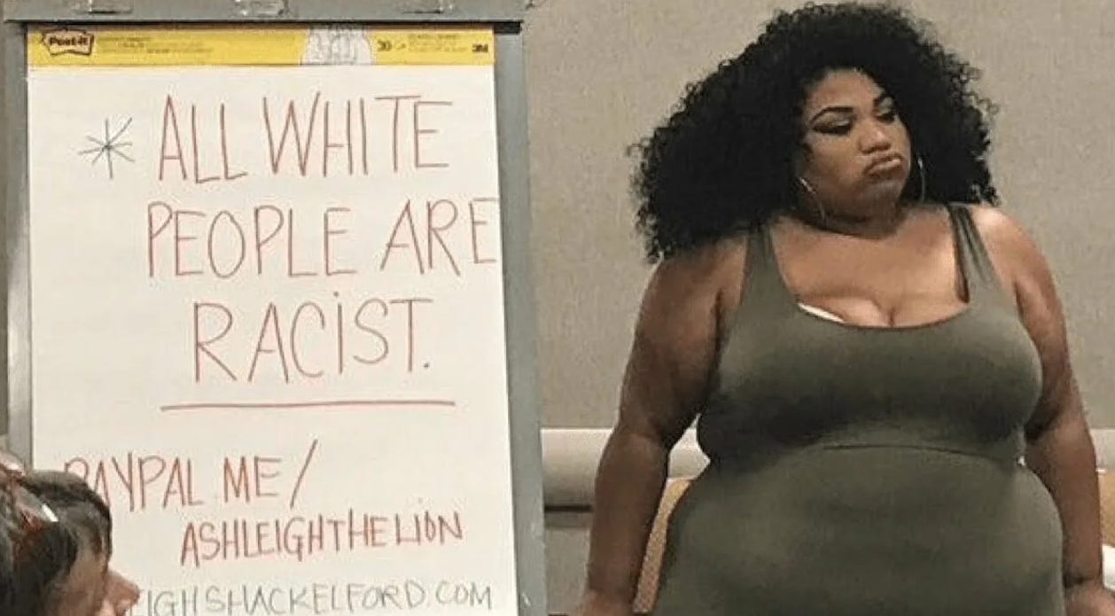 Hucksters like Ashleigh Shackleford (who never saw a drive-thru that couldn’t compel her hands to turn the steering wheel) a “master consultant” of the lucrative DIE industry would show up and get white people within these companies to confess to their “white privilege” and admit their “unconscious bias” that fostered their inherent racism.