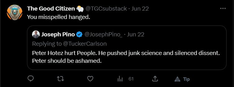 I was recently banned from Twitter “X” for the sixth time in three years. Each offense was the same, a snarky and passive expression for reasonable justice in the wake of millions of iatrogenocide murders.
