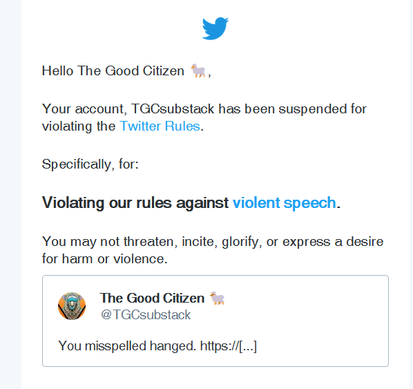 X’s “trust and safety” butt bois claimed I violated their rules against violence, but in my reply, I doubled down and said they misspelled justice because throughout history one man’s violence is another man’s justice.