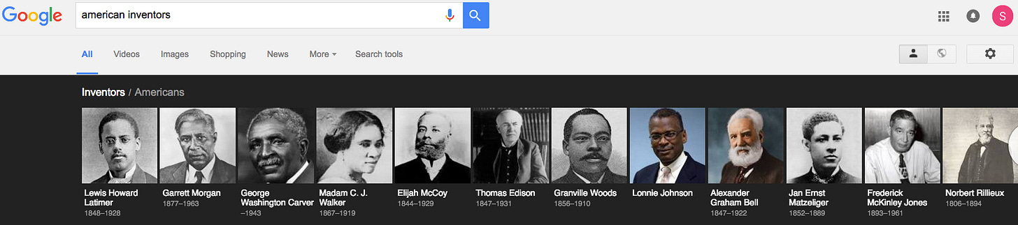 The dedicated Ukrainians completed their task and arrived at the first page of results. They gently pulled their screens down with the tip of their index fingers. Their jaws dropped before they burst out laughing hysterically. Google had engineered nearly all its search results to show only black inventors when searching ‘American Inventors’, dropping a few token white inventors near the end with Thomas Edison, Alexander Graham Bell and Ben Franklin. The other thirty or so were all black and until google decided to rewrite history to appease social justice initiatives desired by Marxists whose goal is to always rewrite history to enhance their power, many of these black inventors were hardly known for inventing anything revolutionary at all. Google did the same with Mathematicians and who knows what other categories.