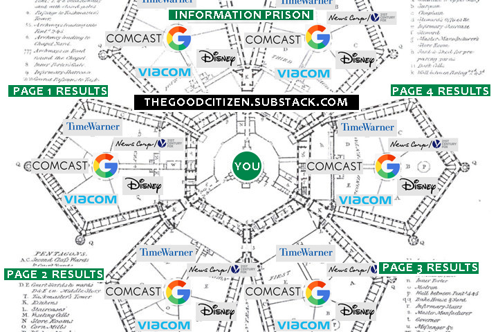 Those who point to Google’s abhorrent hand in censoring the truth from the Chinese people on behalf of the CCP, are incapable of understanding that same hand has done the same for the powers that control the society where they live. Information prisons in Chinese characters may look different than those in English, but they function exactly the same. The only difference between the physically incarcerated Foucauldian panopticon subjects and the socially engineered is the incarcerated can see the bars, while the socially engineered are made to love their bars by mistaking them for something else.