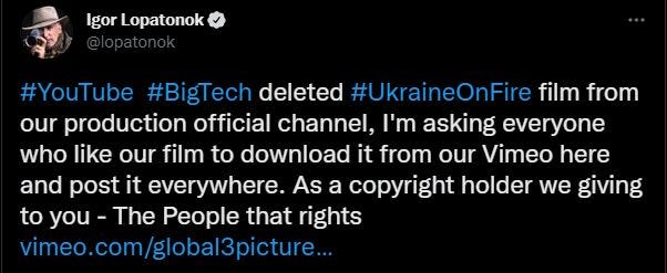 In honor of the slimy rats at YouTube for censoring this film last month, Iβm sharing it here, but just the first thirty minutes. Uploaded with copyright permission from Director Igor Lopatonok.