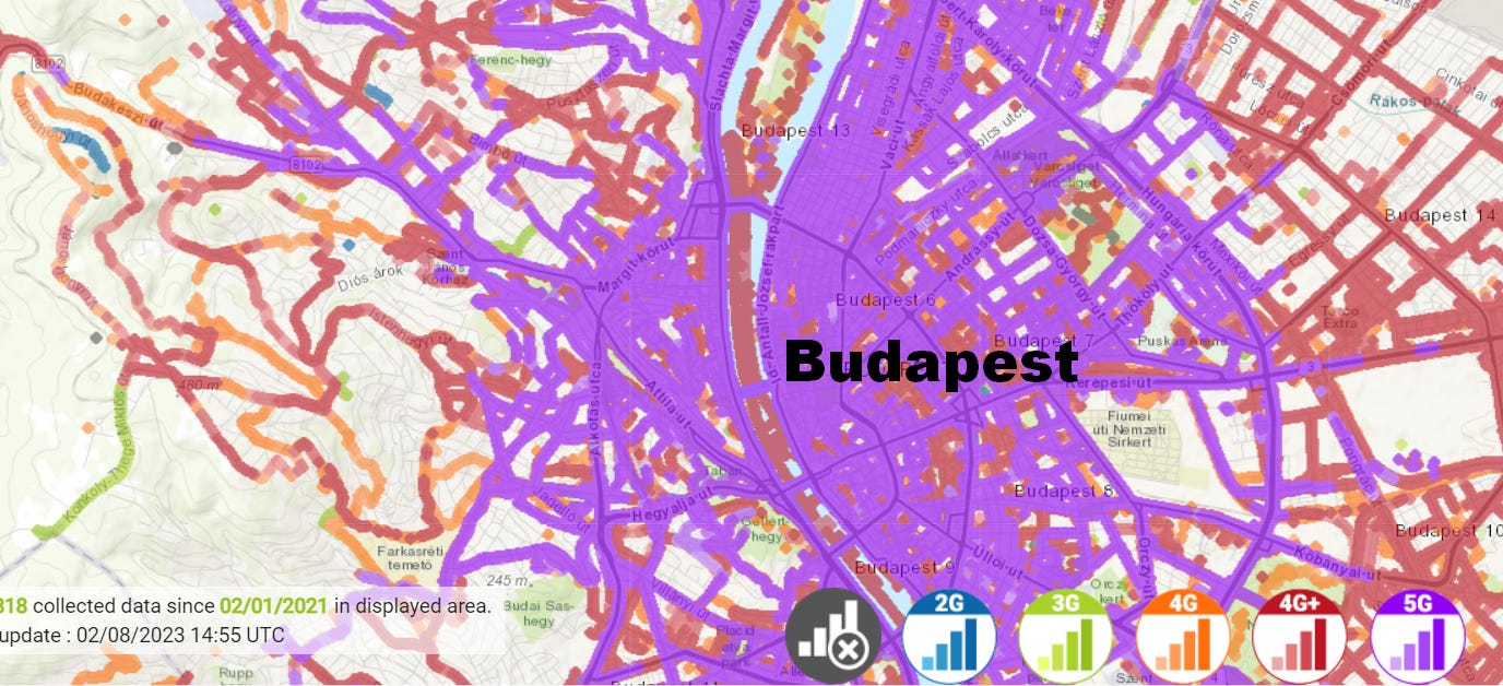 As part of my relocation search, specifically viable cities in Mexico, Croatia, and Hungary I always do a 5G scan on Nperf.com to see the latest expansion of 5G antennas right down to street level.