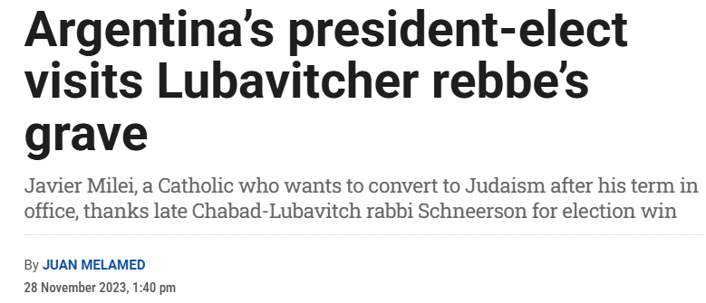 Why did the recently selected Jewish president of Argentina first go to the Chabad Lubavitch world headquarters in Brooklyn before going to visit Israel in the days after his selection? Why would he thank their former departed cult leader for his win?