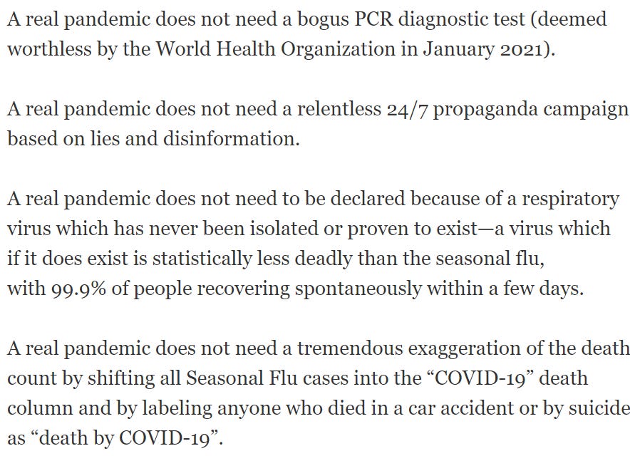 I must say, this is the most all-inclusive detailed article on the no-virus/scam pandemic maybe ever published on the internet to date. If one reading this article is not forever changed (assuming they felt differently before reading), they would be suffering from delusionary denial of FACT! Terrific job Good Citizen!