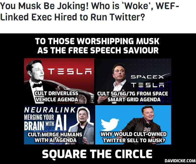 He's super freaky, but not in the good way. I do appreciate how he is a litmus test of who to trust; if you trust Musk, I don't trust you. Simple. (And check their garage for a robot car).