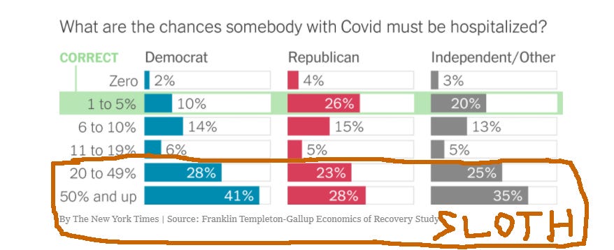 In the initial days of the Plandemic when enough was yet unknown to amplify hysteria, politicians and the managerial class who follow the “experts” who make up The Science™ advised millions of people to lock down. For the working and middle class and small business owners whose jobs required their physical presence, this was devastating policy. For mentally fragile and isolated individuals, and those with ongoing health conditions in need of tests and treatments, this was deadly policy. According to a published cost-benefit analysis of lockdown secondary and tertiary effects, the author concludes, “It is possible that lockdown will go down as one of the greatest peacetime policy failures in modern history.”6 But, for the expert class of work-from-home pajama-wearing Netflix bingers this was an opportunity to sleep late, log on to the occasional zoom call (CCP spyware)7 and endlessly signal their virtues online from the warmth and comfort of their criminally overpriced urban apartments.