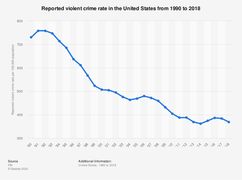 Crime had already been falling considerably since peaking in the 1970s and early 80s, interestingly the last period the nation experienced economic stagnation, inflation, and high energy prices. Violent crime has been rising again for the first time in thirty years under similar conditions. Although itโs less likely due to economic factors and more likely attributable to the intentional anarcho-tyranny of Democrat lawmakers and their funders like George Soros who install hapless puppets that refuse to enforce any laws or prosecute violent criminals, releasing millions of them on the streets to re-re-re-re-re offend. See Los Angeles, New York, Chicago, and San Fransisco for obvious examples, though there are a dozen other cities following this intentional madness.