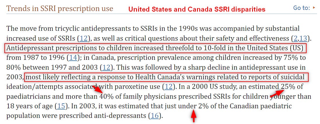 As with all of the Big Pharma agenda, the rise of SSRI (Selective Serotonin Re-Uptake Inhibitors) prescriptions for adolescents in the 1990s, was not rooted in science or research but in greed and avarice. These powerful psychotropic drugs create dependency. They numb the thoughts and feelings and limit our beautiful wide range of human emotions so that individuals cannot feel any joy or euphoria with the aim of eliminating sadness and oft-misdiagnosed depression. They cause suicidal ideation, and aggressive behaviors including homicidal ideation. That millions of American children have been prescribed these drugs is one of the greatest medical tragedies in a very long growing list of tragedies inflicted on the population by βscienceβ and βmedicineβ.