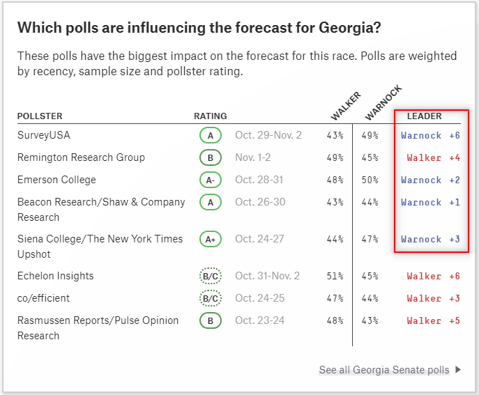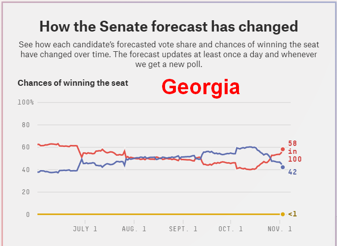 Another fixed race in 2020 for Biden already has the foot soldiers and federal functionaries firmly in place in Fulton and Dekalb counties to pull off the midnight ballot dumps to trigger those verticle blue lines again. Former Cowboys running back Hershal Walker was pulling ahead in October polls against incumbent Raphael Warnock, but the regime went to work on the last six polls to make this one look like a real down-to-the-wire horse race. If Warnock wins you can bet the fix is in, again, in Georgia.