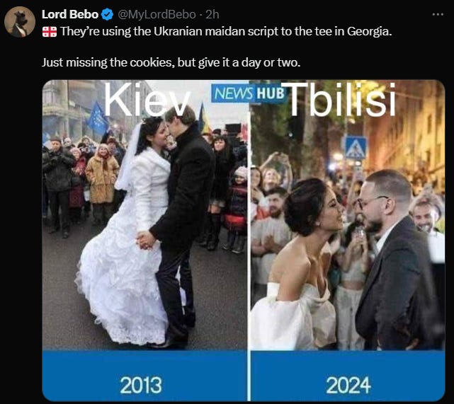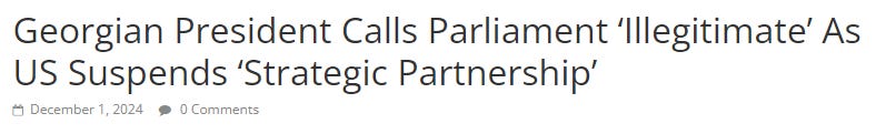 We’ll see what plays out in Georgia in the coming days, but you can bet the State Department, Mi6 and CIA assets are running the show now from the President’s office. The fact that on the same day, the President announced she wasn’t stepping down and she would try to hold new elections with the β€œcorrect” outcome, the U.S. is attempting to remove its fingerprints from its latest coup on Russia’s border.