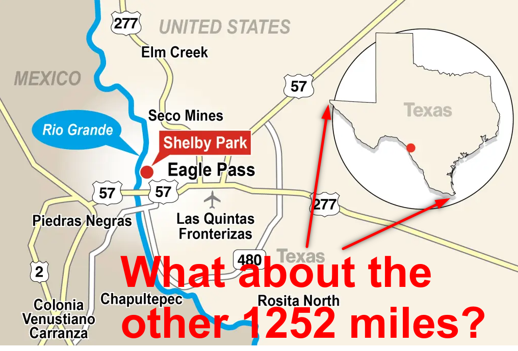 Also, the other 692 miles of border from California to Texas are still wide open.