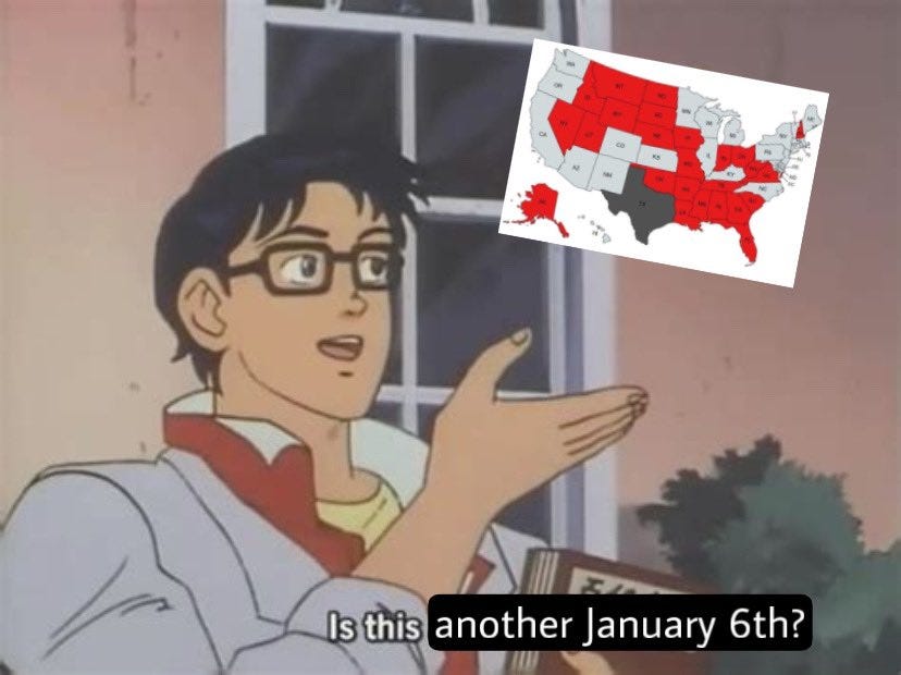 Donβt fall for it. The rhetoric coming from Con Inc., Trump, and the Grand Ole Pussies is January 6th all over again.
