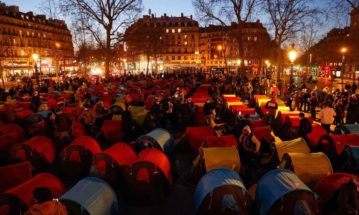 Photo of Paris today where hundreds of thousands of male occupiers camp in its plazas and at city hall. Officials are trying to “incentivize them to leave” before the Olympics in August so Paris appears respectable to the world: