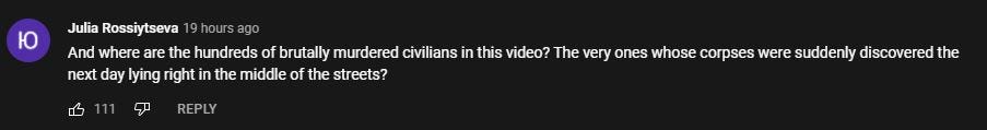 Turns out the mayor of the town made a video three days before those reports and also curiously makes no mention of all those civilian bodies in the street. Perhaps he didnβt get the memo from the comicβs handlers at Langley yet for what was to take place soon.