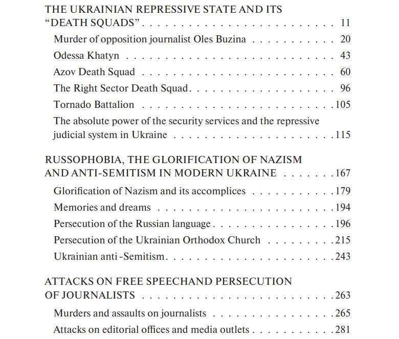 Meanwhile here is a 400-page report detailing Ukrainian War Crimes and human rights violations from 2017 to 2020 before a single shot was fired. Some of the topics include the rise of Nazism, Anti-Semitism, Russiaphobia, assaults, and assassination of journalists, attacks on media outlets, offices, and the usual killing of thousands of civilians in the Donbas region who got no western media attention because they were ethnic Russians killed by CIA trained Ukrainian neo-Nazi hit squads. Righteous kills by righteous men.