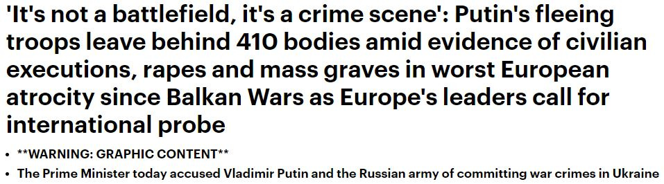 On the butchers of Bucha, who really knows if anything happened there but itβs probably best when in doubt, to resort to the first two Good Citizen Rules.