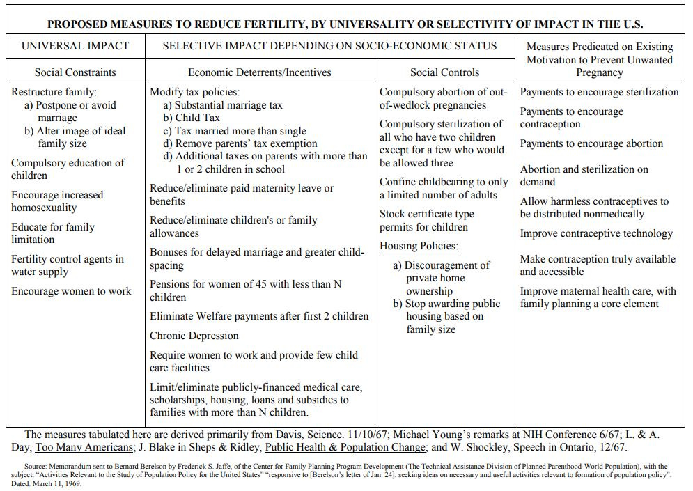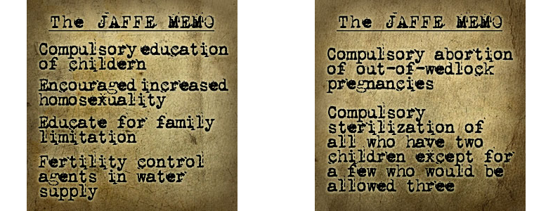 The infamous “Jaffe Memo” document produced by Planned Parenthood in 1969, in a single page, conveys the depravity of elites’ intentions in managing the U.S. Population.