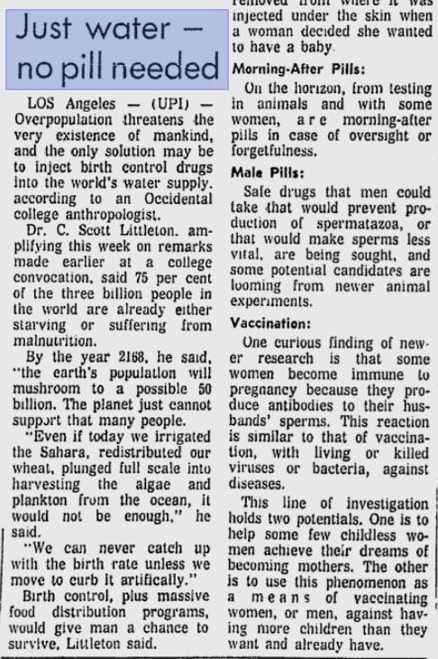 Around the late 1960s, the population control managers were busy getting their agenda published in newspapers around the world. Priming the public for what was soon scientifically possible for “family management”.