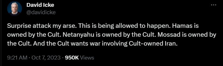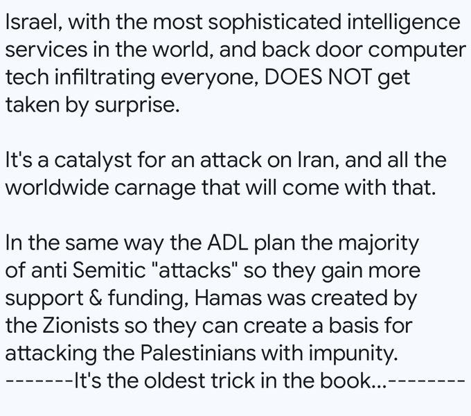 Today the official narrative managers want us to believe the most technologically sophisticated surveillance state (inside and outside their citizens’ bodies—most vaxxed) couldn’t monitor people who they claim “want to wipe Israel off the map” in a geographical area the size of Brooklyn from Coney Island to Rikers Island.