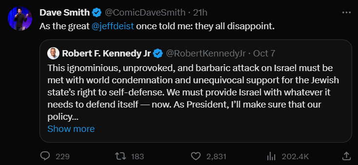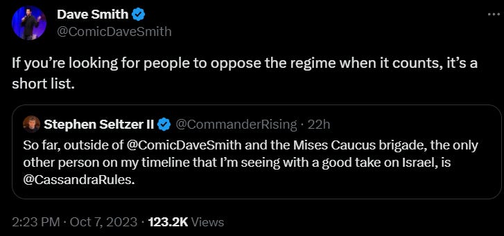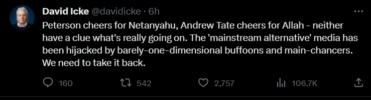 "After a few hours of observing the spectacle on “X”, I only found two individuals with the courage to stick to their principles, call out the hysteria, question the official laughable narrative, and not make everything a tribal or political argument about the Orange man or demented one."